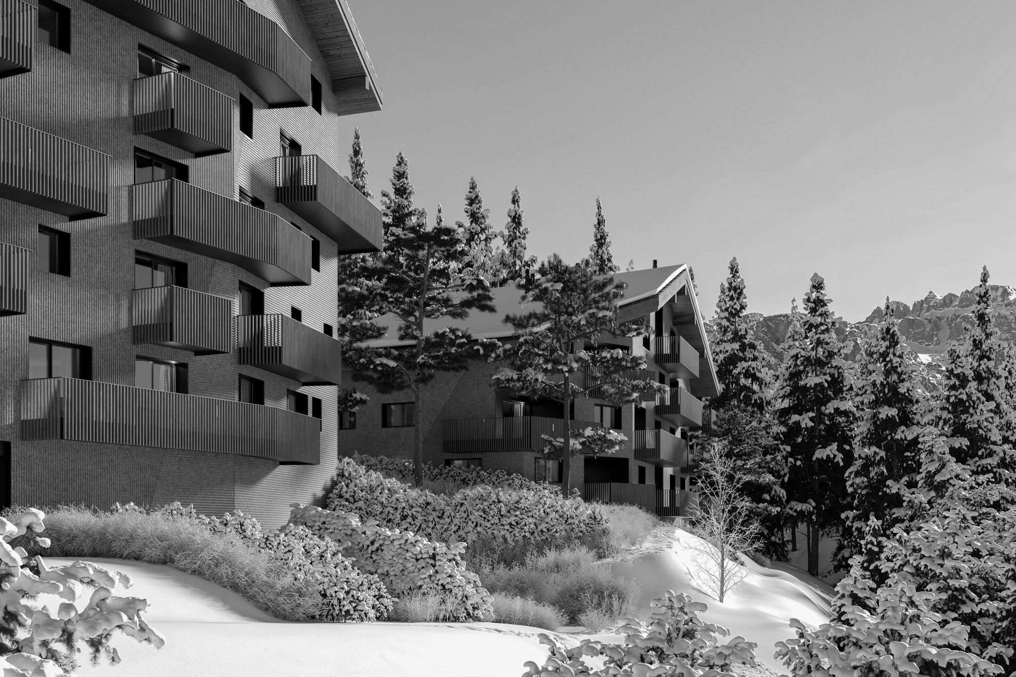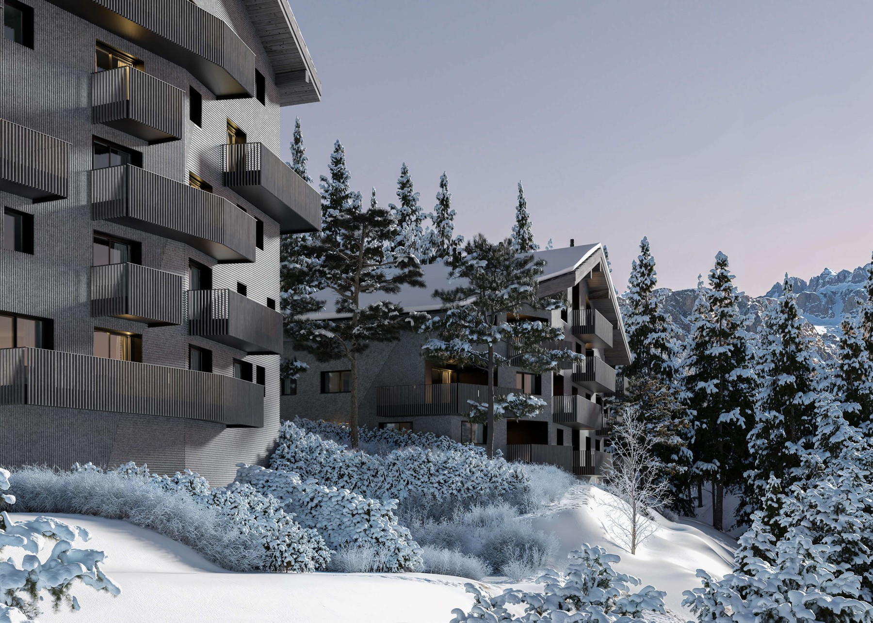There’s elegance amongst the pines in Crans-Montana. The FENDI Private Residences compound, perfectly harmonized with the surrounding nature of the Swiss Alps, provides a sophisticated setting against a backdrop of snow-capped mountains and lush gardens.