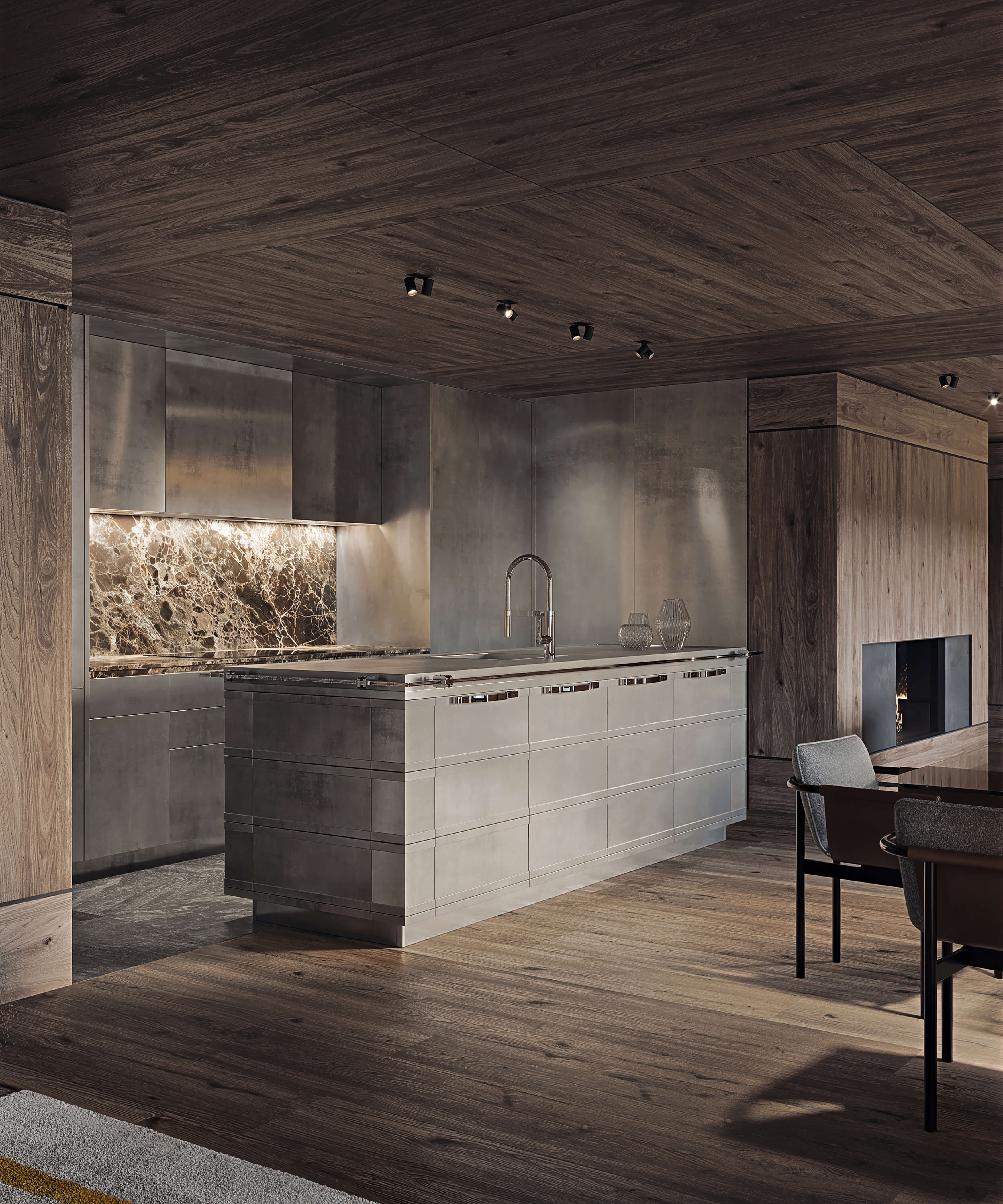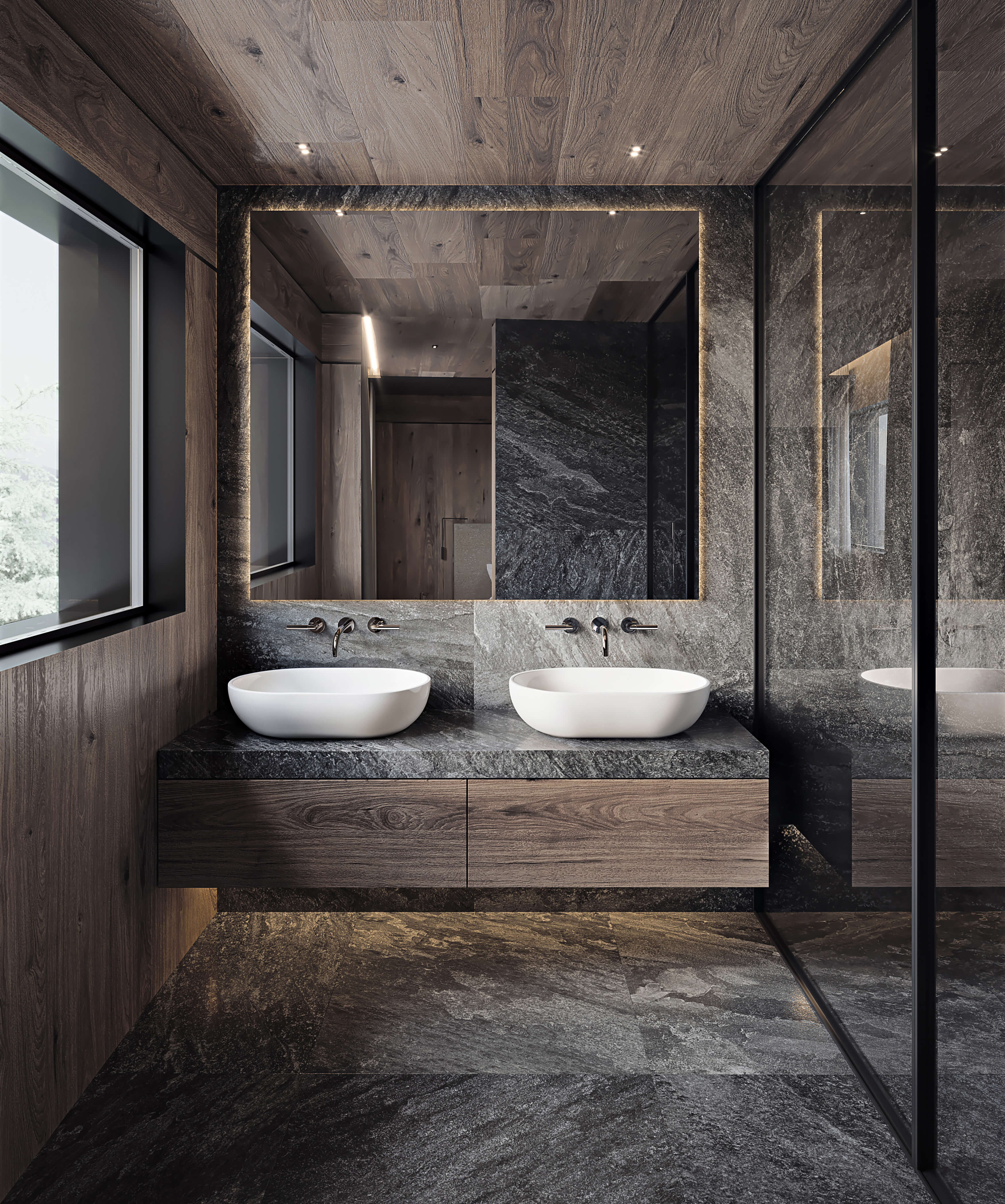 Through fusing the project’s site into the spirit of the existing place, the site’s ecotone is enhanced, presenting an environment where the forest meets the alpine meadow and where humans integrate with nature, creating habitats for small animals, birds, butterflies and bees, fostering the local biodiversity. Inviting residents to linger in the landscape both inside and out, the presence of natural elements is felt throughout the compound from benches along walking paths to a spa area that’s seemingly carved directly into the surrounding rock as if it was and has always been there waiting for you.